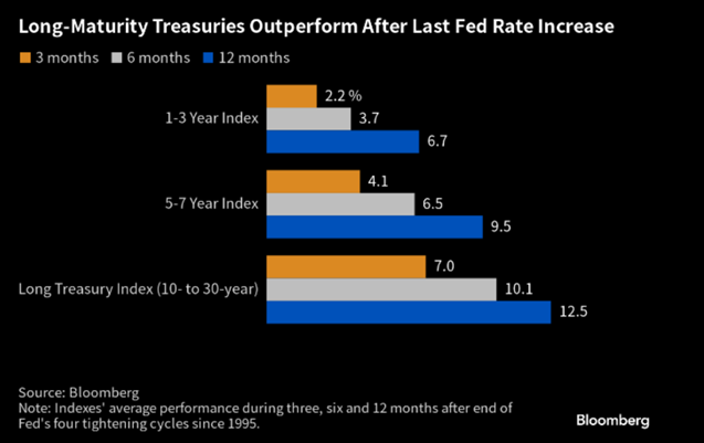 For those credit unions that find themselves in the envious position of having excess reserves that could be invested, now may be the perfect time to put those funds to work. Historically, longer-term investments have outperformed shorter-term investments by a significant amount after the last Fed rate increase in a cycle. The graphic below depicts this by showing long-term treasuries outperforming short-term treasuries by an average of 5.8 percent (12.5 percent vs. 6.7 percent) over a one-year period after the last rate hike in the Fed’s four tightening cycles since 1995.